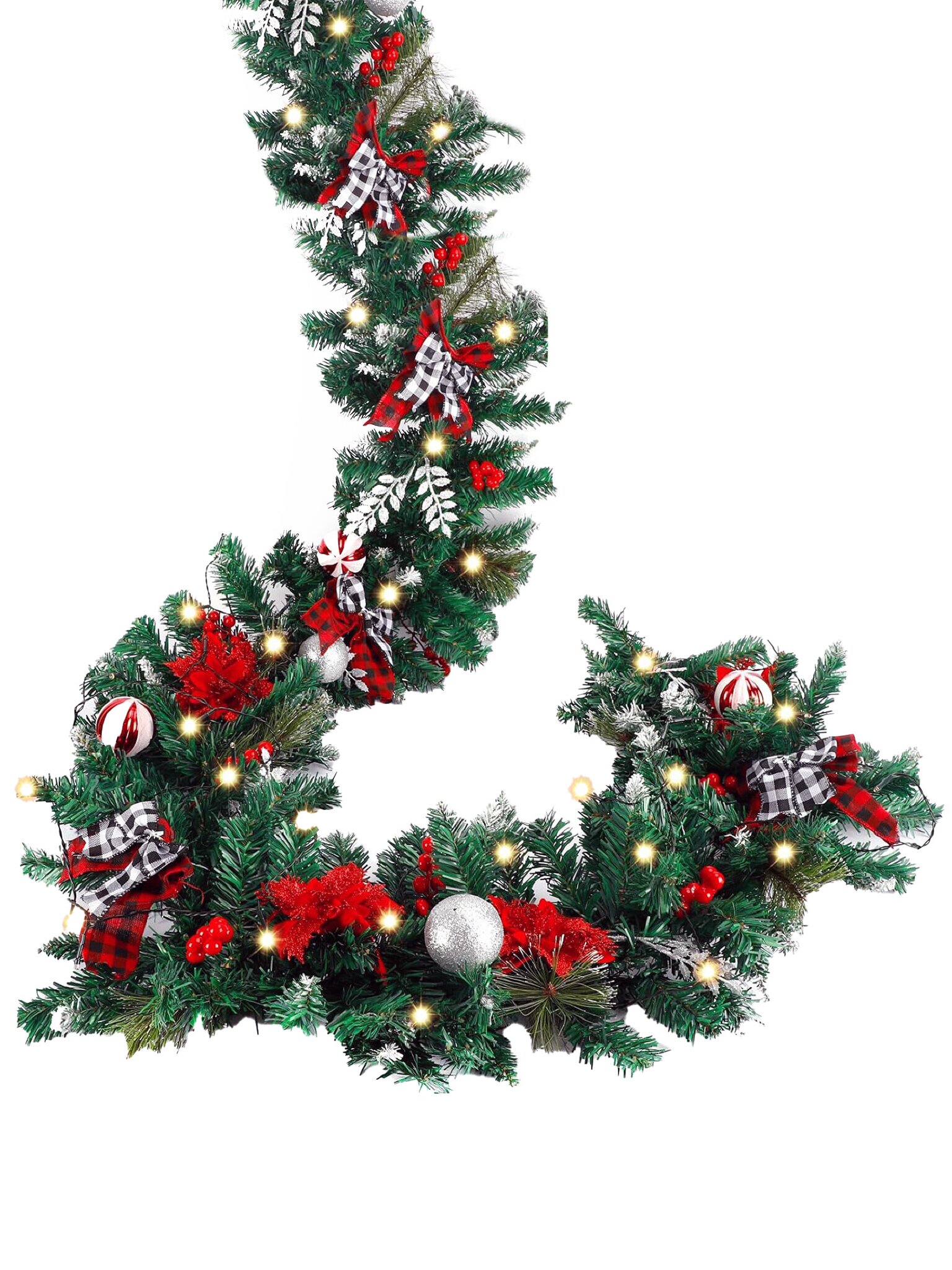 Добавьте магии вашему дому с новогодней хвойной светящейся гирляндой. Эта гирлянда выполнена в виде еловых веток с яркими елочными игрушками и мерцающими светодиодными огоньками, создающими праздничную атмосферу Рождества и Нового года. Идеально подходит для декорирования каминов, дверных проемов и окон. Изготовлена из высококачественного ПВХ, гирлянда гарантирует долгий срок службы и безопасное использование. Подарите своему дому праздничное настроение с блеском и цветом. Длина гирлянды 2.7 метра, 50 LED лампочек. Несколько режимов свечения.